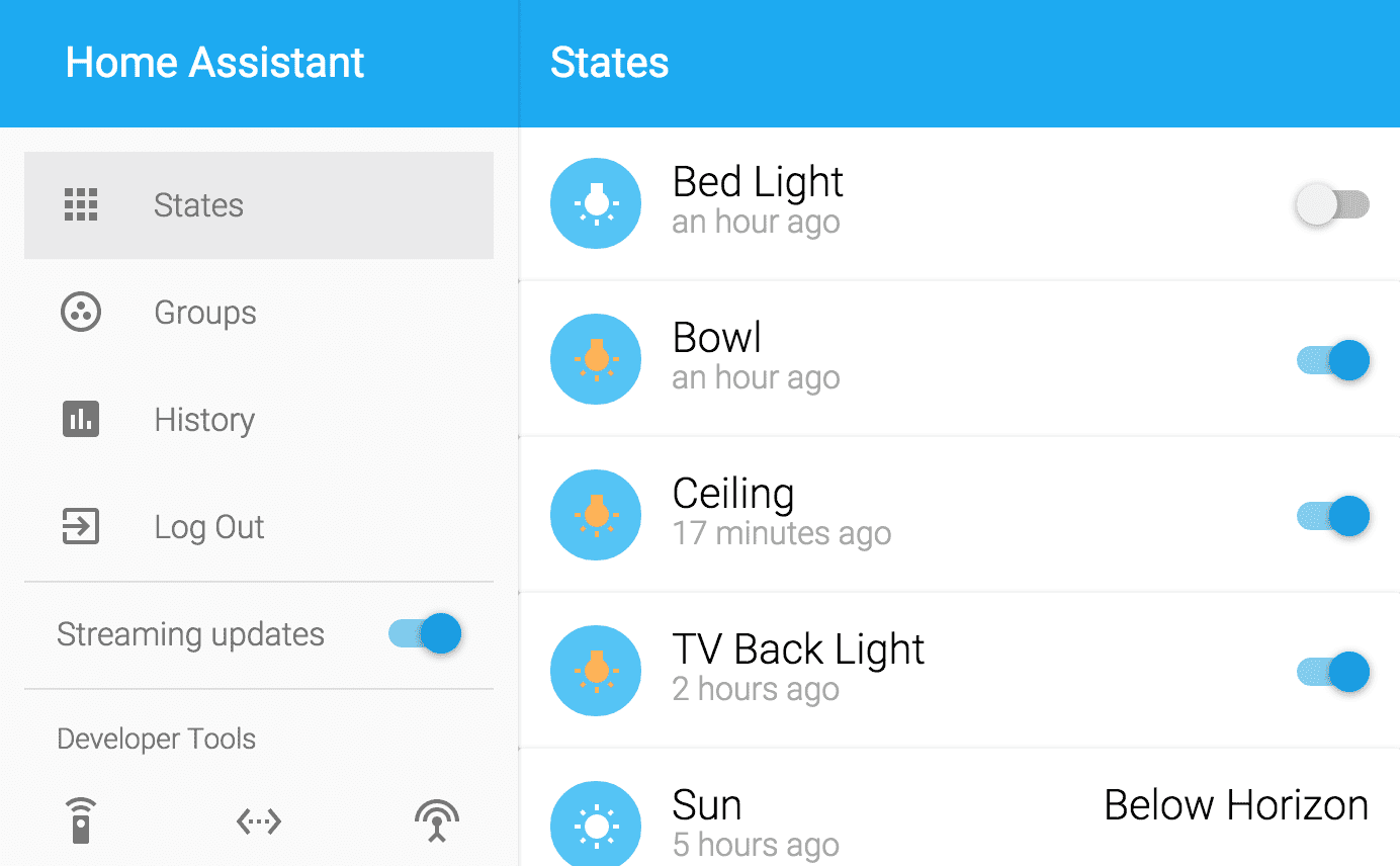 Home Assistant has learned a new trick to get the latest information from the server: streaming updates. No longer will the frontend poll every 30 seconds for updates but instead it will keep a connection open and get the latest changes pushed as soon as they happen.