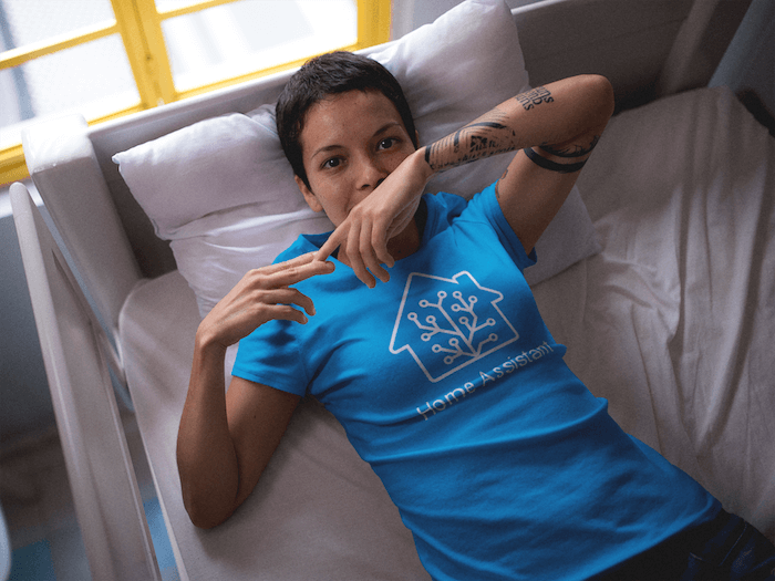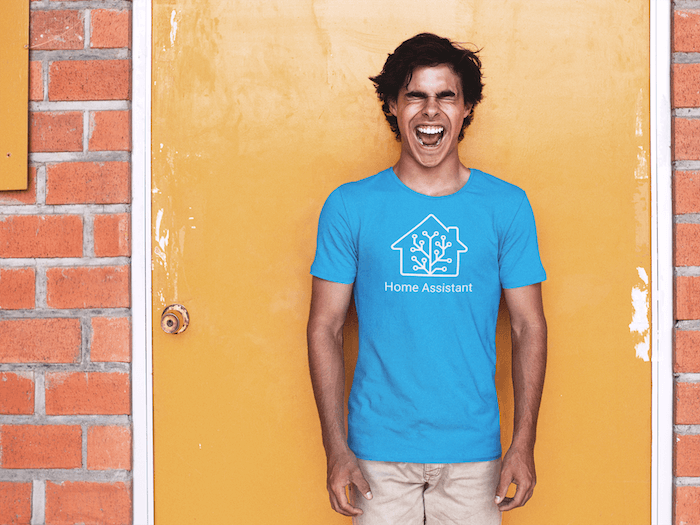 What time is it? Yep, t-shirt time. Today we’re launching the first two Home Assistant designs. We have a blue t-shirt as pictured above and a design for on black/gray shirts as pictured below.